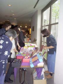 ■西村繁男、いまきみちのご夫妻の店。たのしい絵本を手に取るひとがおおぜいいました。遠方から来てサインをもらってご機嫌のひとも。 |