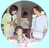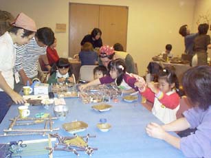 ■小鳥の土鈴に自由に彩色してもらうコーナー。ちっちゃい子がいっしょうけんめいで、いいですね。 |