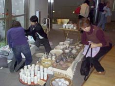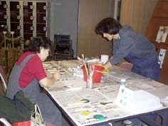 ■「ツチノコ」という名の傍嶋飛龍・新里かおりのおふたりのユニット。このショットは傍嶋さんが開いた手鏡への絵付けのワークショップ。 |