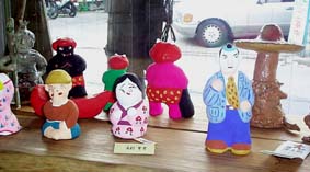 ●西村茂男 ■藤野では絵本以外のことで忙しい。泥人形、針金オブジェ、陶芸、看板。絵本の平面から抜け出して立体を作るのはおもしろい。他に自然農をやったり、とにかく藤野はのんびり忙しく、楽しいところ。 |