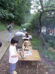■「ぐるしの展」には6日と8日にいってきました。あまり時間がなかったので、ちょこちょことうろついただけです。まずは『三宅岳・菊地典子展』へ。渓流沿いの道に写真の仕事が展示され、かたわらでは花炭を作るワークショップが開かれていました。 |