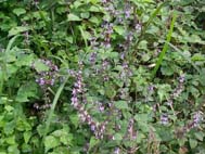 ■一帯には秋の野花が咲き乱れて、ものうげなアブの羽音まで耳に残りました。ヤマハッカの種類だと思われるうつくしい植物。 |